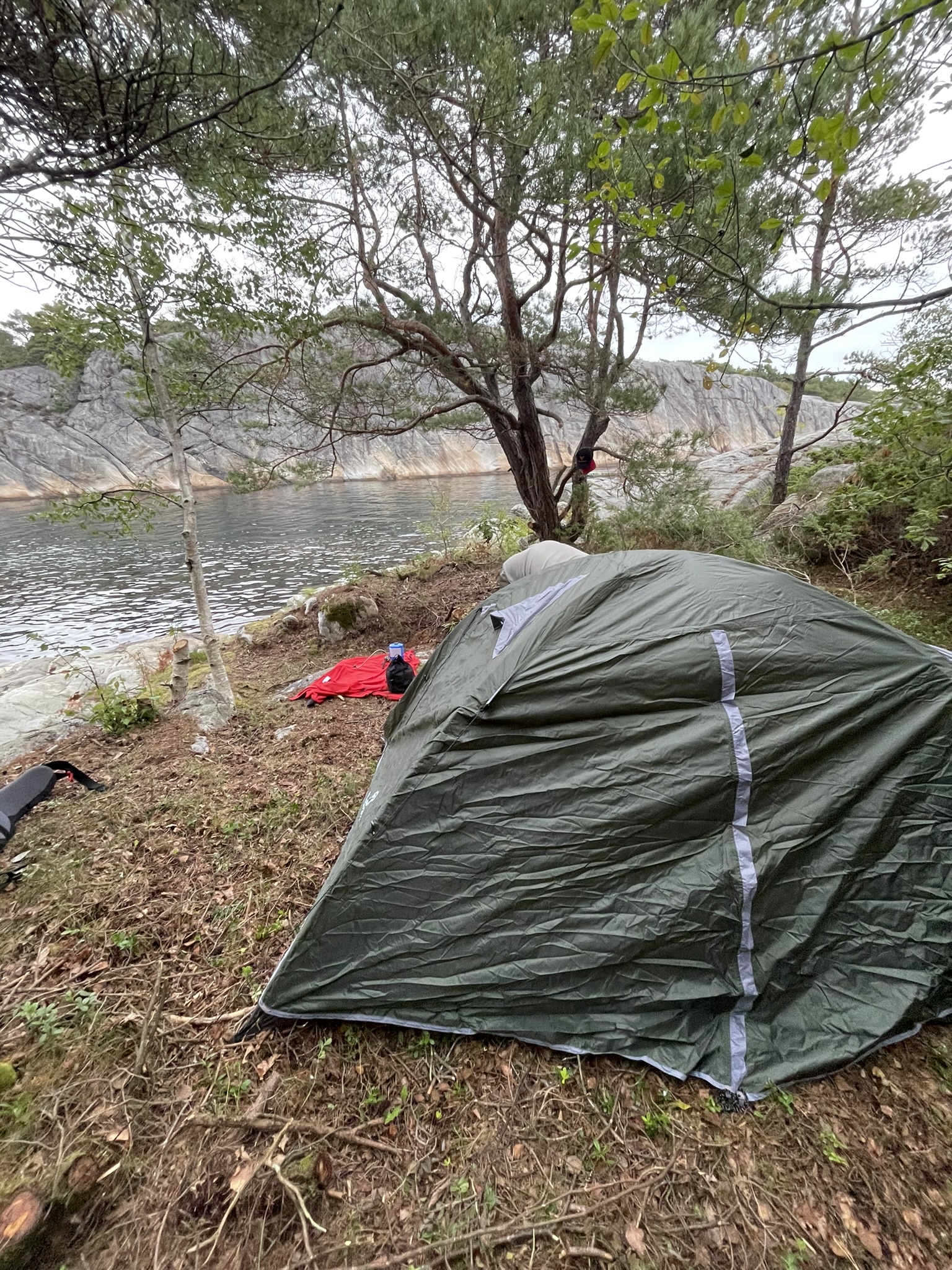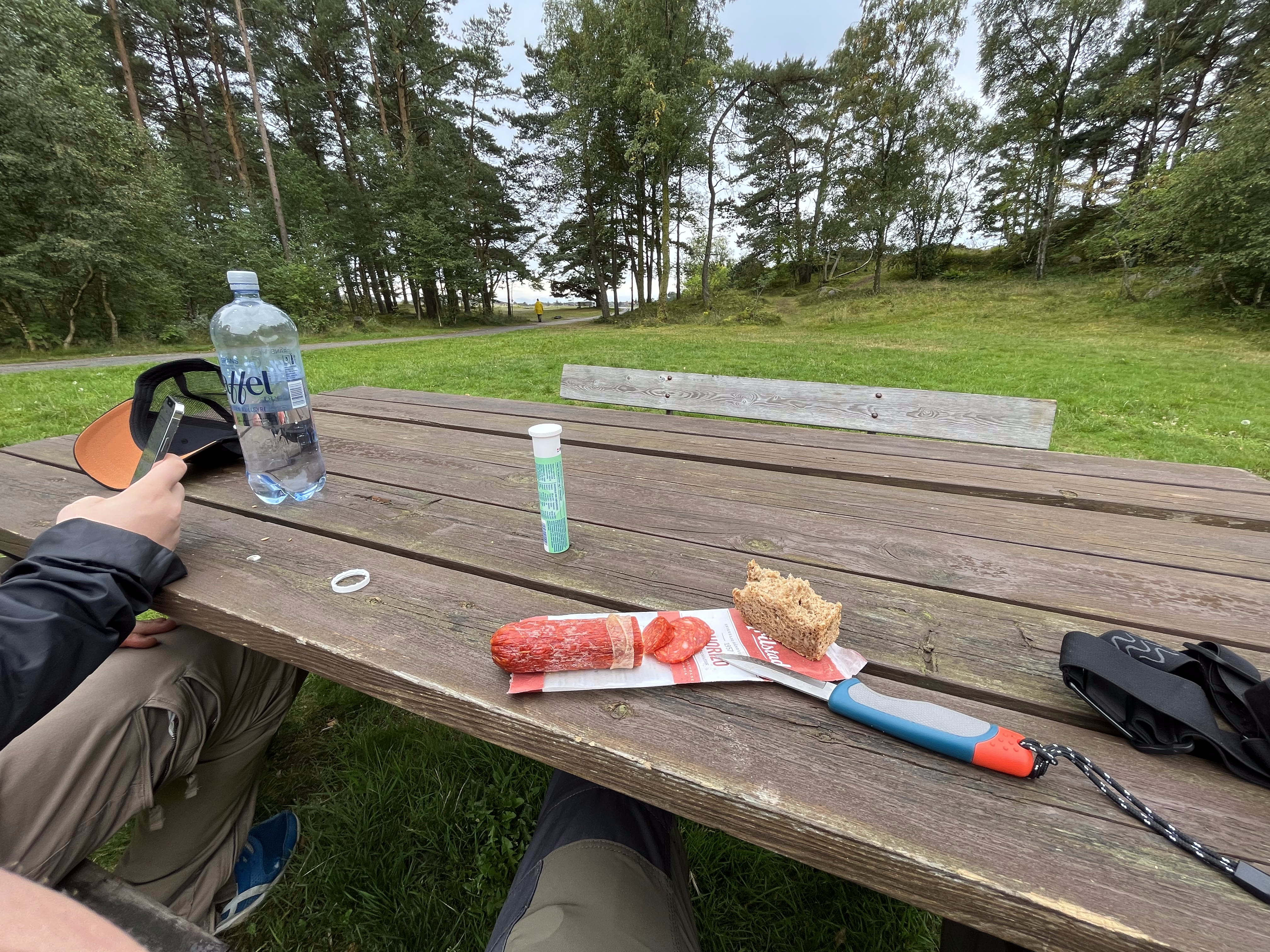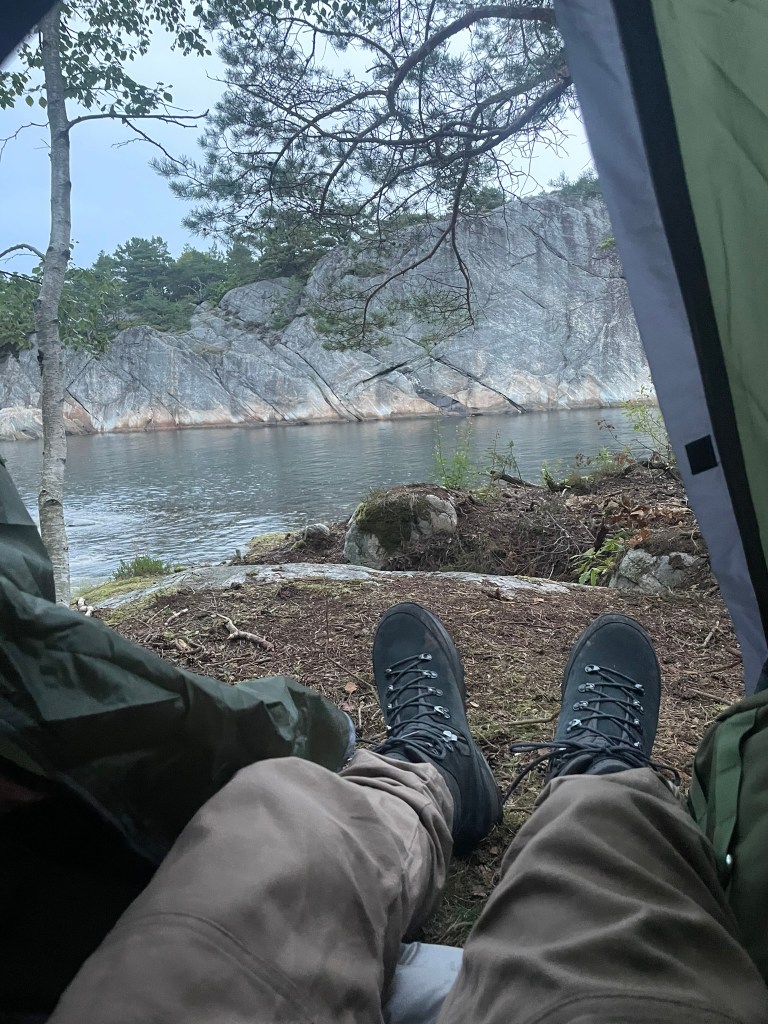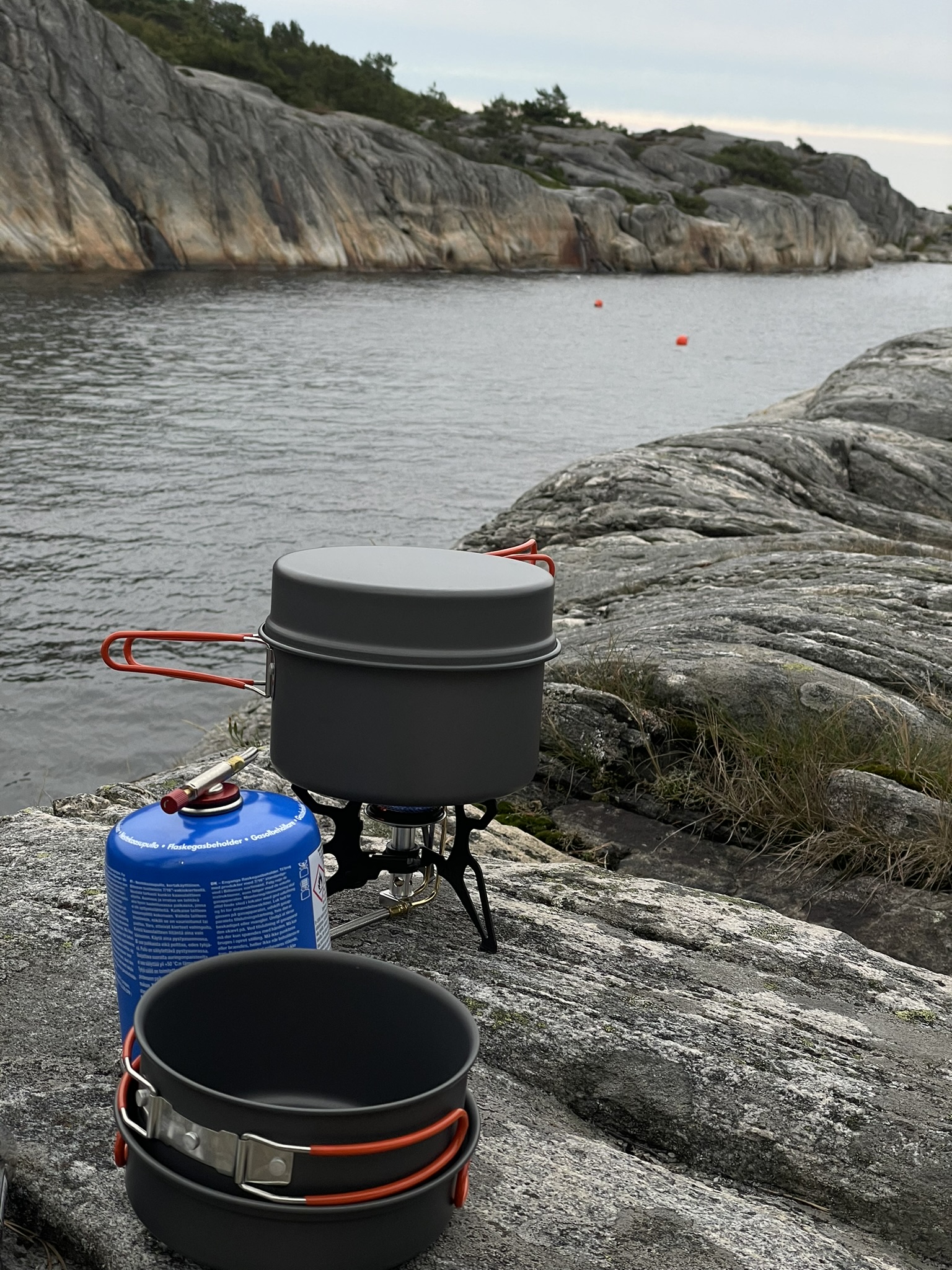 Socks? Wet. Did I have a second pair with me? No. Why, you ask? Lighter backpack after the hike yesterday. Essentials should be on us everytime? Yes absolutely. Learned. Food? Oh were we hungry. Our meal? Tomatosoup with a whole pack of crispbread and canned spaghetti with little sausages as well as meatballs. Not that of a fine dining experience, nonetheless it was all we needed.