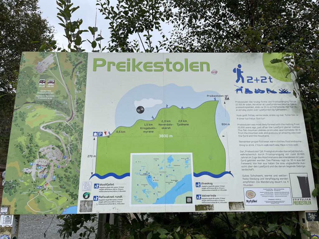 Time for the first big one. After the 24km tunnel after Stavanger we arrived at Preikestolen parking at half past 1. Standard procedure. Pack our bags, camping stuff, food and most important water. Target 604m above sea level.