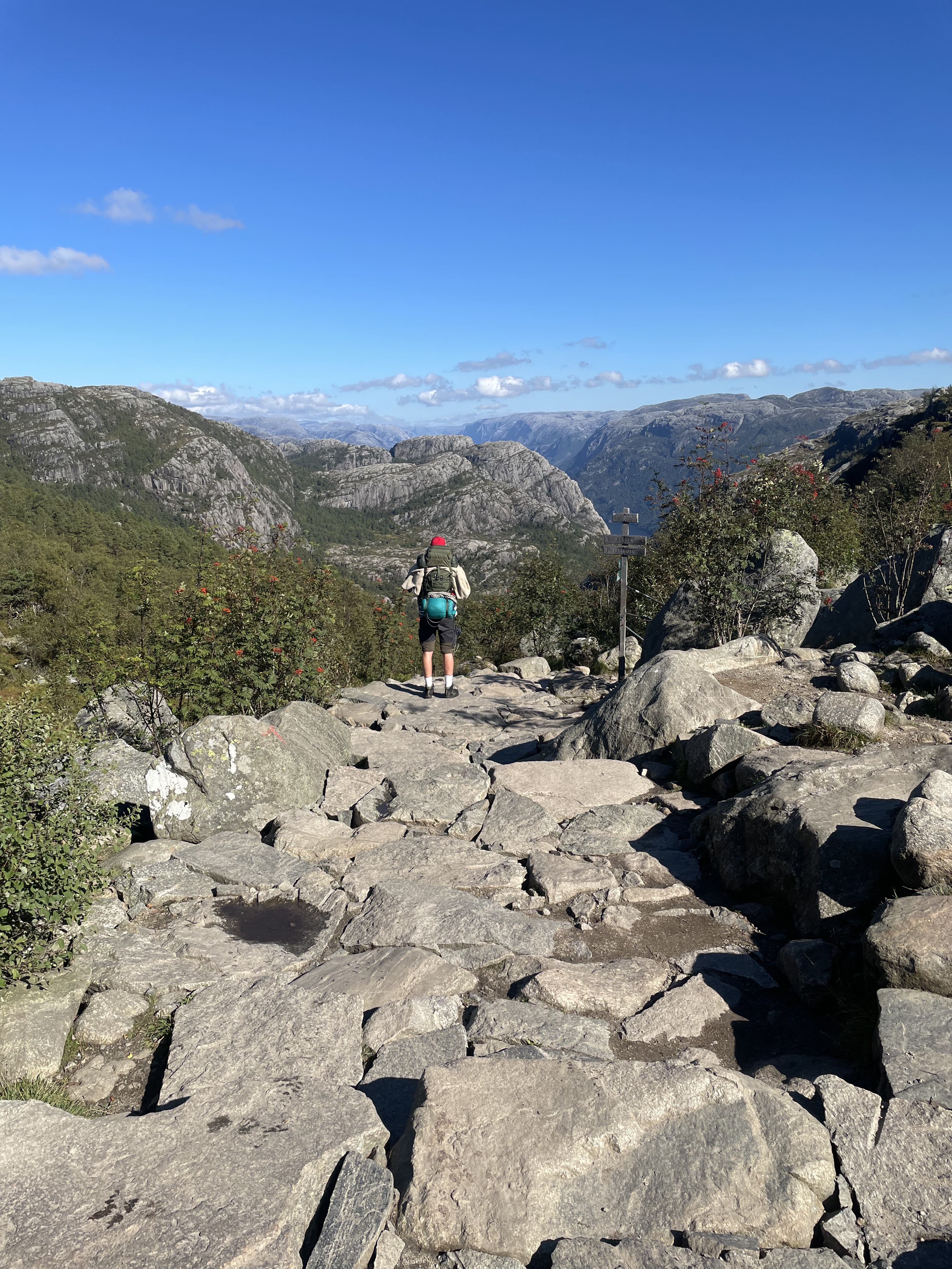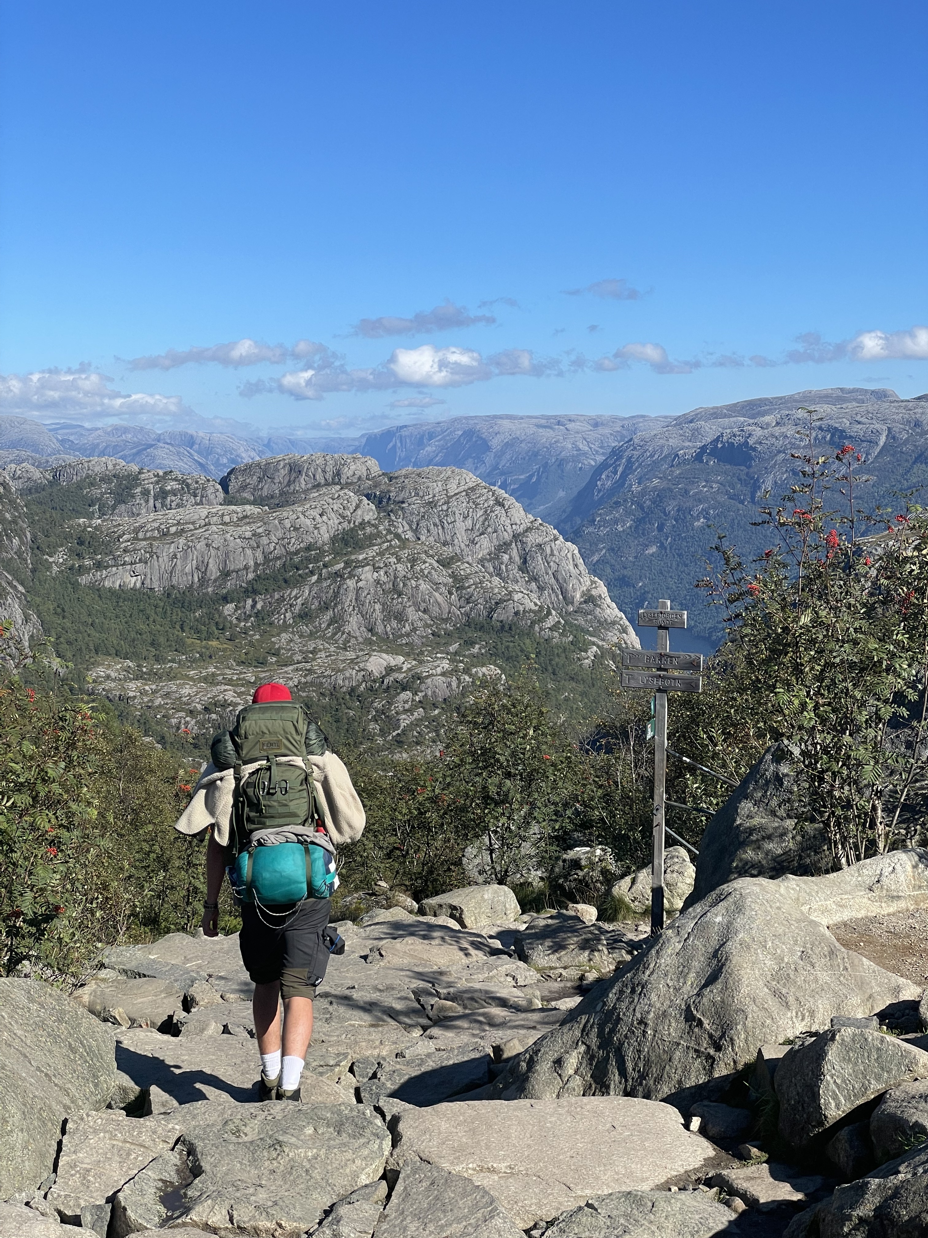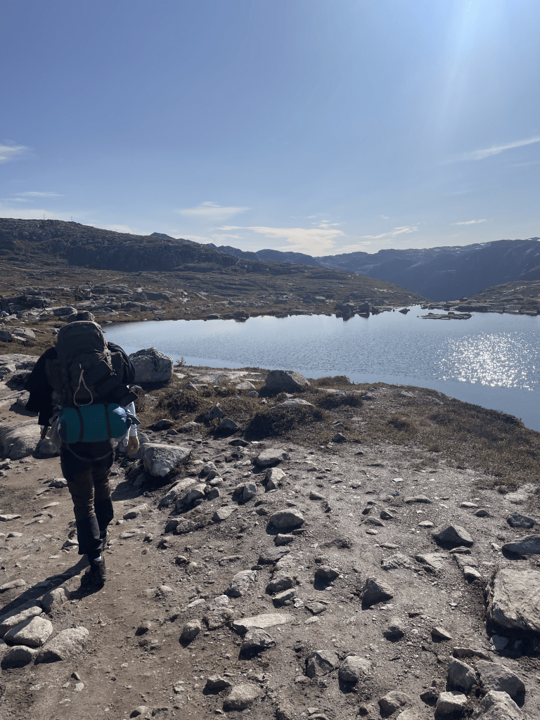 Luckily it wasn’t as crowded as Preikestolen, but we still got stopped by some strangers, because they needed help. One of them had some blisters and they asked us because they waited for people with “big backpacks”, since “surely have everything you need” with us. Frankly it was a big boost, getting to help someone. Also due to the fact that we didn’t any of the our patches and it felt useless to take them with us.