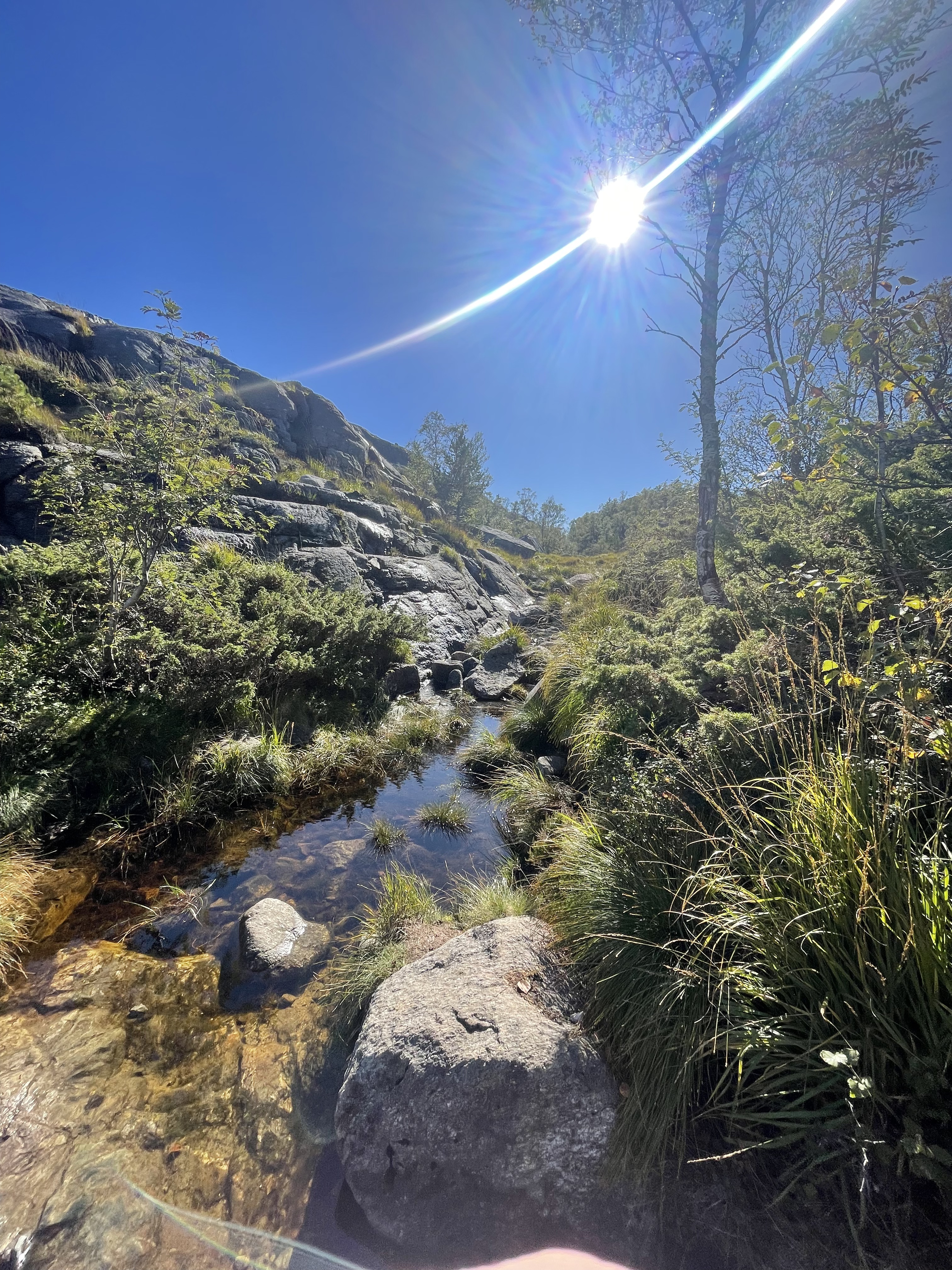 2.5km along a fjord. Rough terrain. Grass, earth, stones, creeks. It had a bit of everything, some say it felt like lord of the rings. It was a bit mystical. GoPro on my head, walking through. 10 minutes in, it was annoying so I put it away in my pocket. 10 mins further I wanted to film again. No it was gone. I haven’t even noticed it. SHIT. Okay bagpack down and I started sprinting back. 2-3 spots were I can possibly lost it, there were big steps down, where I took a jump. Spot 1 – nothing. Spot 2 – same. Spot 3 – about 20-30 meters after I stopped filming I finally found it. It was half the way back. To keep up with the boys I had to run back, yes I filmed it again, to at least have a video if I lose it again.