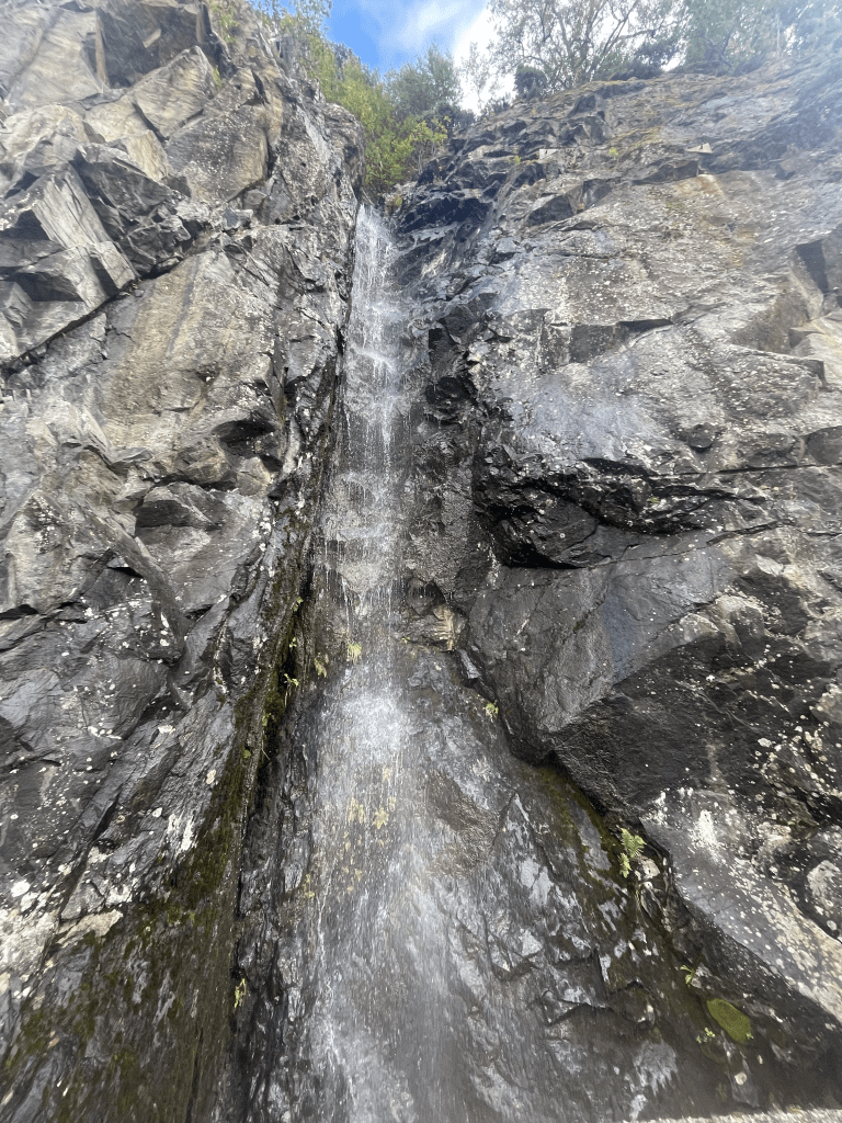 Ten minutes later the road was finally free and we drove along. What happened next wasn’t planned. As we were still determined to show Pierre a big waterfall, we stopped at Thomas Meier Foss. Oh that was a good one. First we saw the big one.