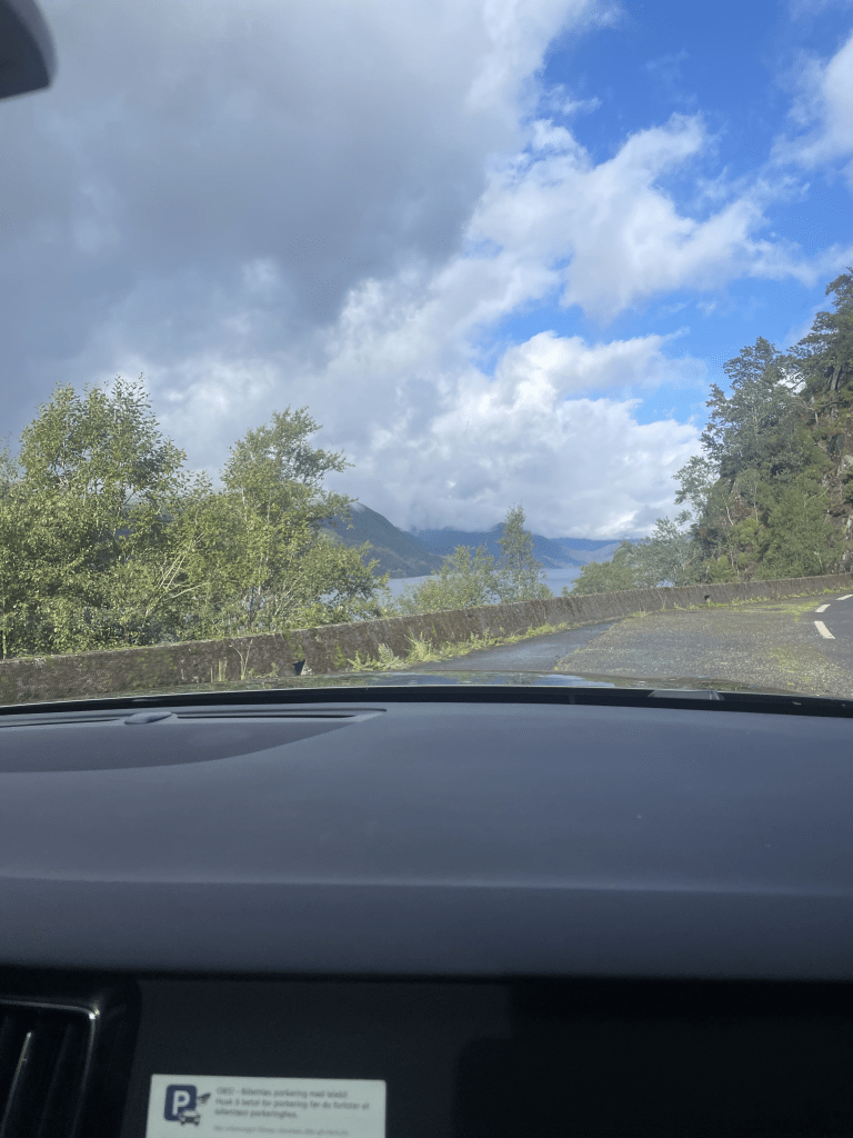 Along the way we could enjoy the astonishing nature of Norway. Since it was the first real day for Pierre, we were eager to show him how beautiful it really is here. We told him there is a waterfall every few minutes. After driving for about an hour and a half, we had seen top class bridges, unbelievable lakes and fjords, but funnily enough no waterfall, fortunately this changed the next days.
