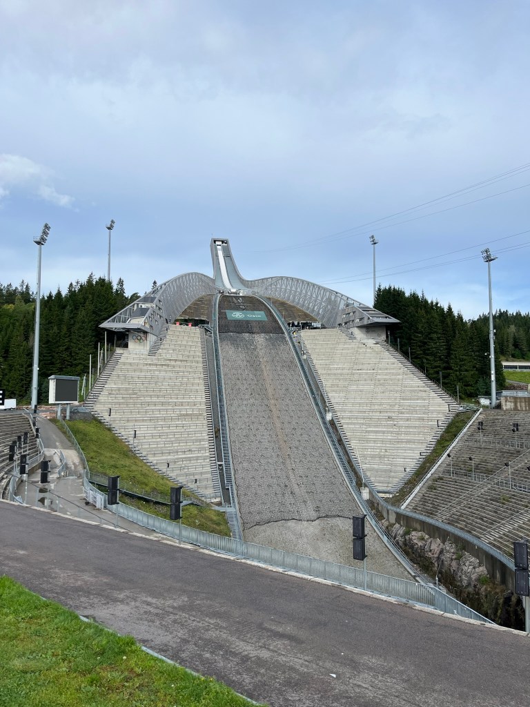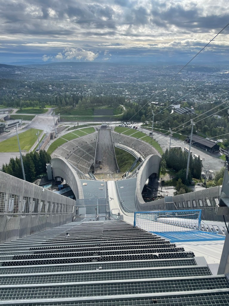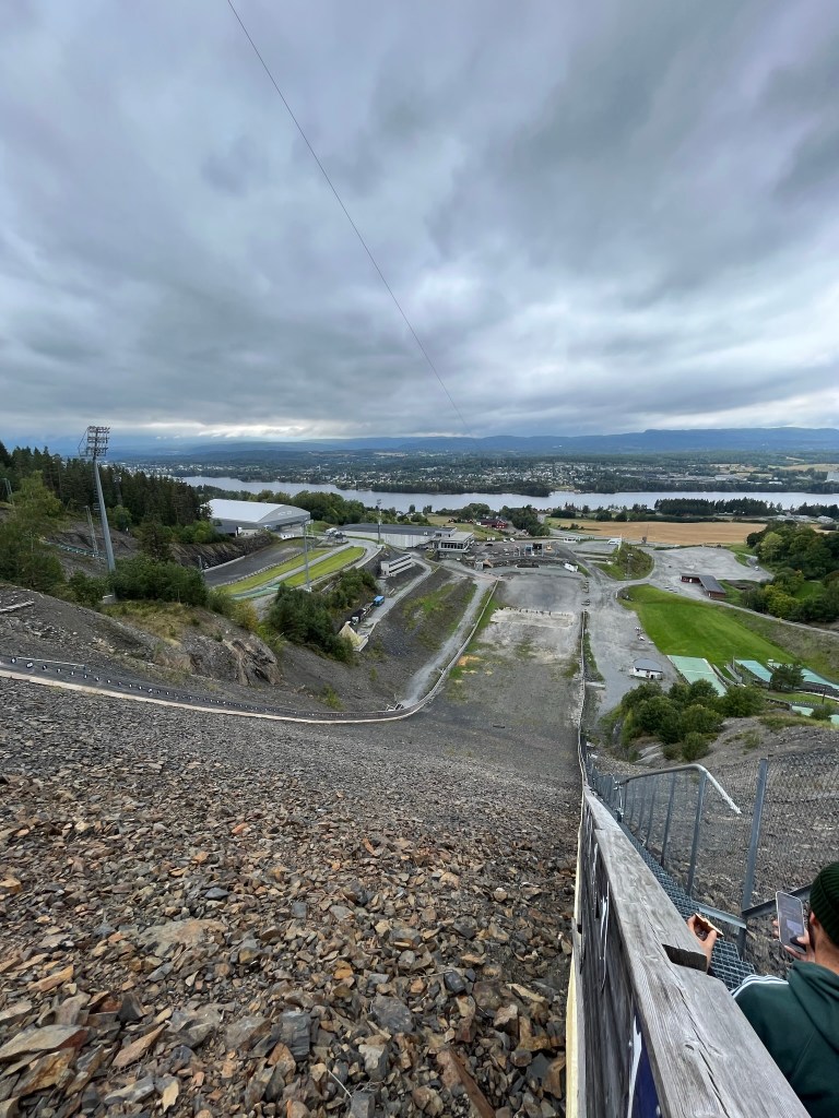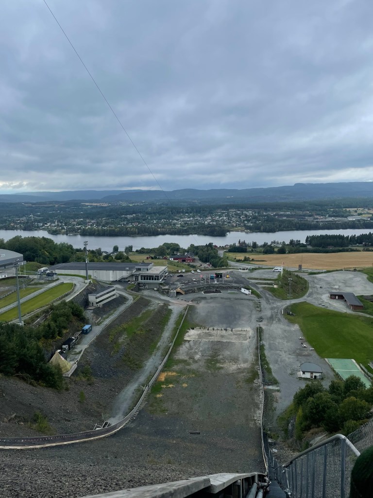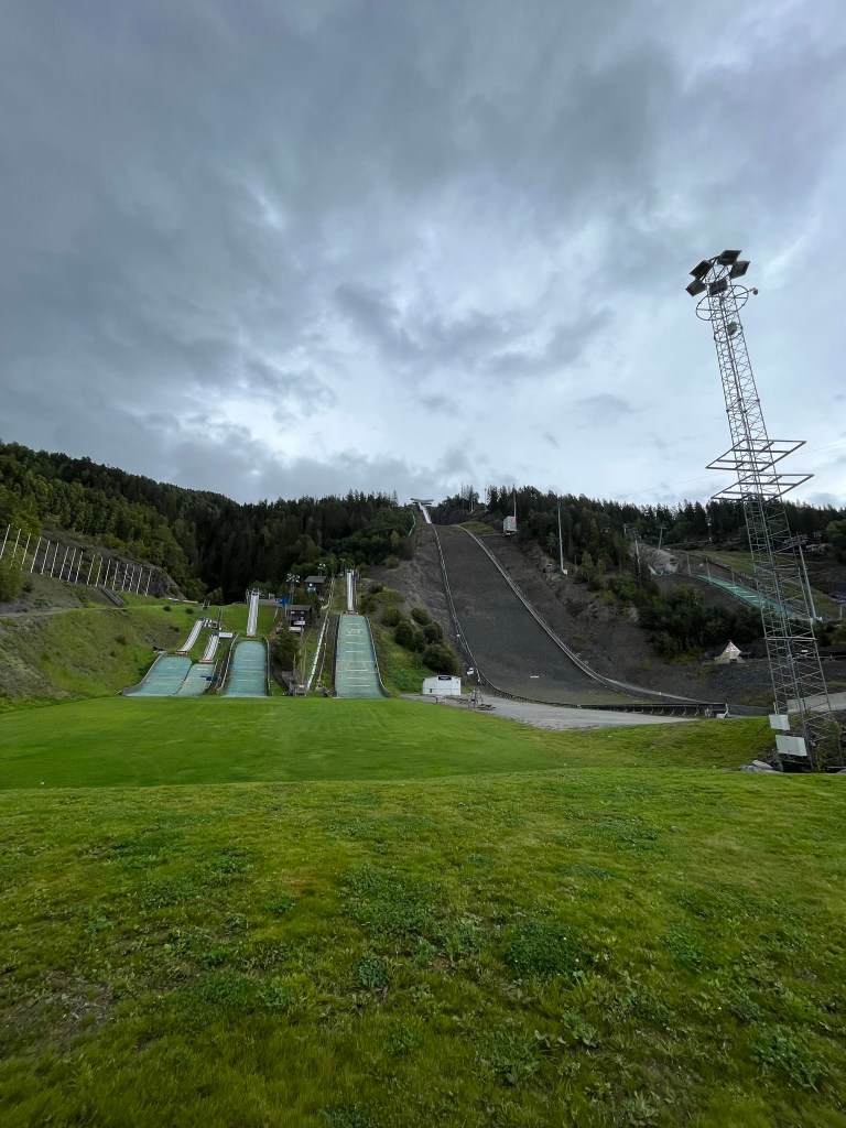 While searching for a place to camp on google maps, I found something. But it took me a while to fully grasp it. It was Vikersund. The largest ski jumping hill of the world. The record held by a fellow austrian Stefan Kraft for 253,5 meters on 18th of march in 2017. Still standing today. I had to go there. Had we been a day earlier, we even could’ve used the zipline, if we were a day ealier. They even had a beachvolleyball field in the run out.