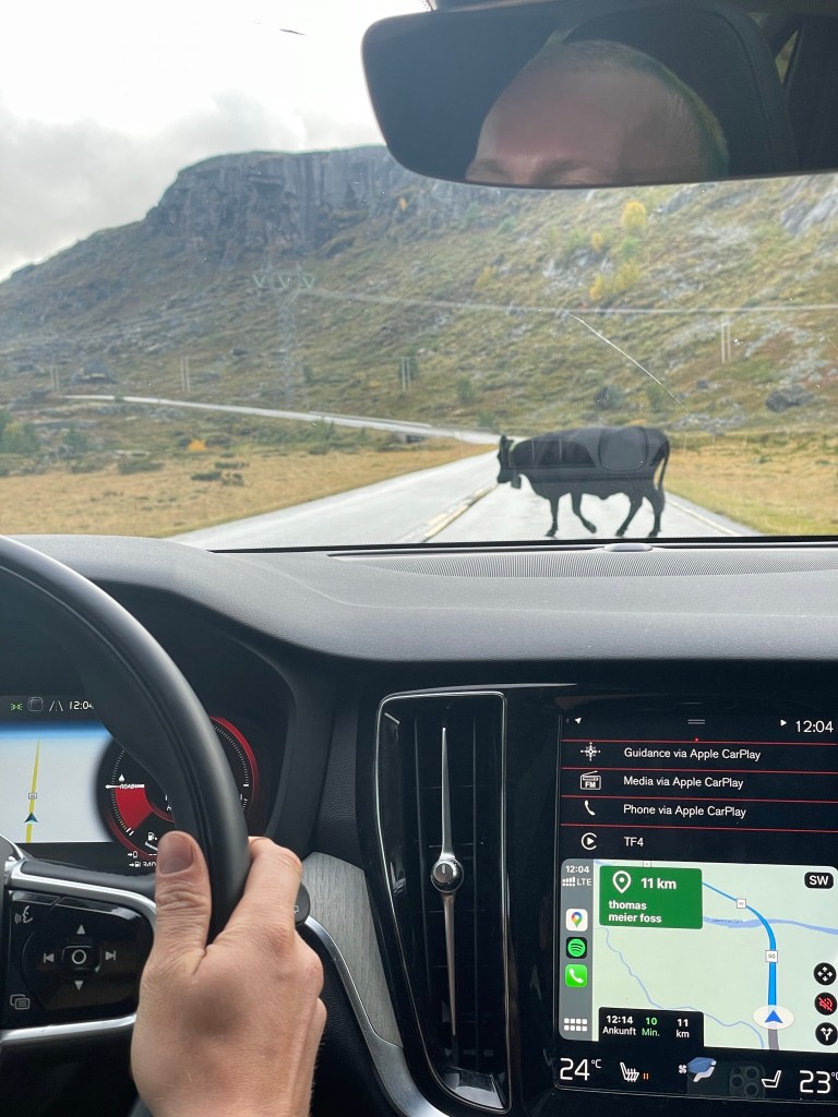 On the half an our drive from Vikersund to our camp in the end. We stopped numerous times and had the same result as seen above. I nearly gave up hope that we have a nice last camp. But inbetween that we had another pretty nice encounter with a cow. Or should I say cows?