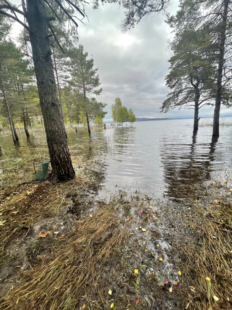 Trees, bushes, the whole coastline under water. Everything wet. It was really hard to find a good spot at Tyrifjorden.